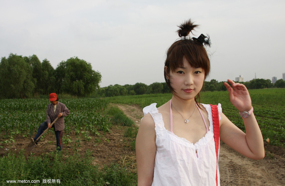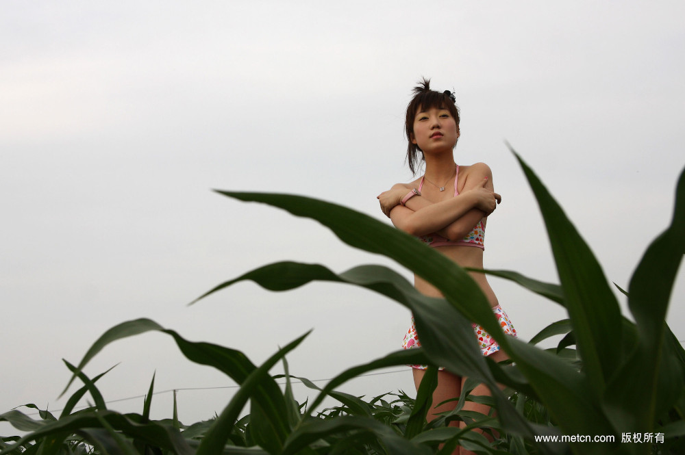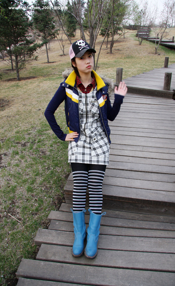 Zhang Xiaoyu non-nude photoshoot outdoors. The cute Chinese girl looks good in clothes too.
